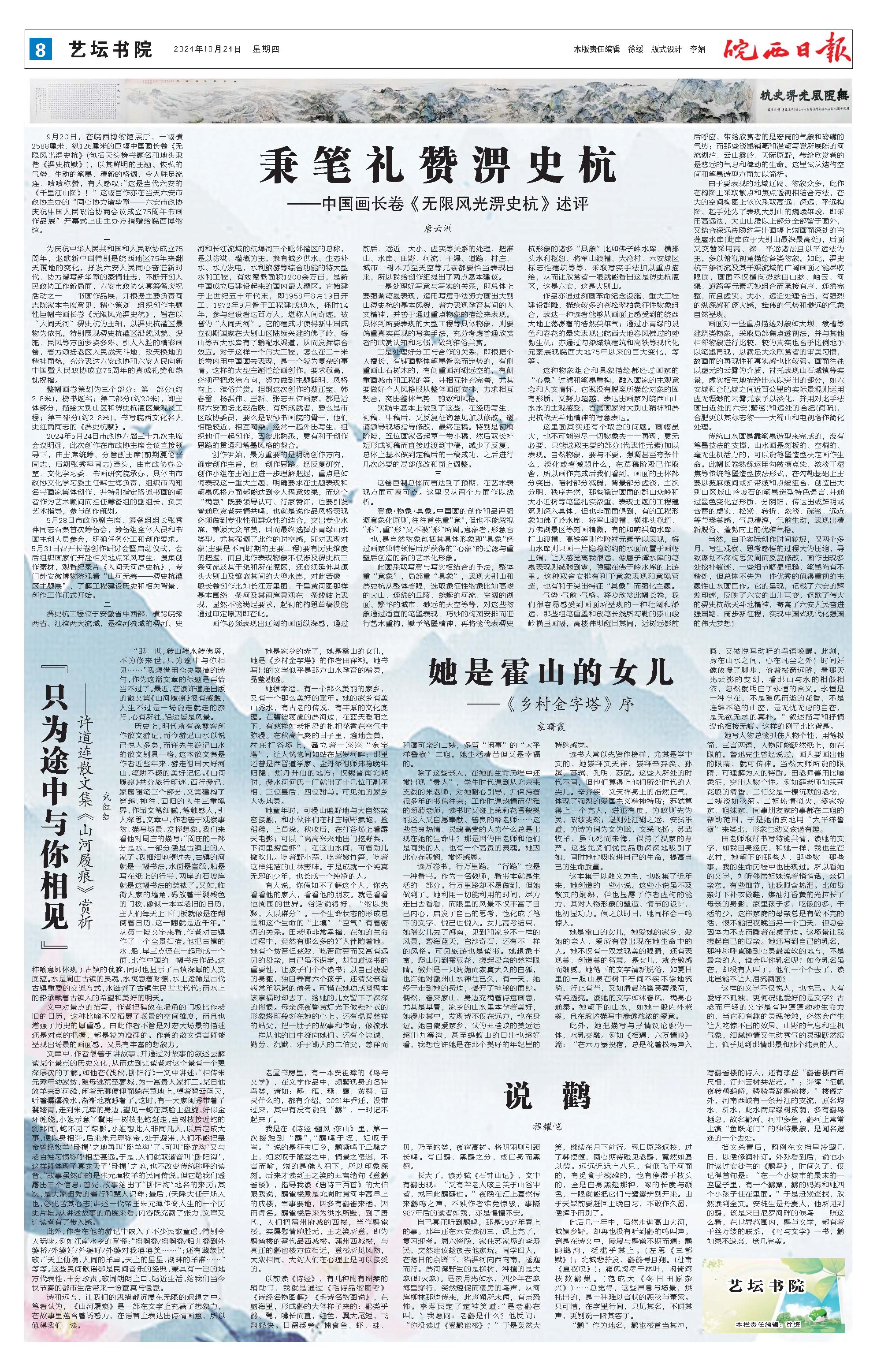 9月20日,在皖西博物馆展厅,一幅横2588厘米、纵126厘米的巨幅中国画长卷《无限风光淠史杭》(包括天头榜书题名和地头隶楷《淠史杭赋》),以其鲜明的主题、恢弘的气势、生动的笔墨、清新的格调,令人驻足流连、啧啧称赞,有人感叹:“这是当代六安的《千里江山图》!”这幅巨作亦在当天六安市政协主办的“同心协力谱华章——六安市政协庆祝中国人民政治协商会议成立75周年书画作品展”开幕式上由主办方捐赠给皖西博物馆。 一 为庆祝中华人民共和国和人民政协成立75周年,讴歌新中国特别是皖西地区75年来翻天覆地的变化,抒发六安人民同心奋进新时代、协力谱写新华章的豪情壮志,不断开创人民政协工作新局面,六安市政协认真筹备庆祝活动之一——书画作品展,并根据主要负责同志陈家本主席意见,精心策划、组织创作主题性巨幅书画长卷《无限风光淠史杭》,旨在以“人间天河”淠史杭为主轴,以淠史杭灌区景物为依托,特别展现淠史杭灌区沿线风貌、设施、民风等方面多姿多彩、引人入胜的精彩画卷,着力颂扬老区人民战天斗地、改天换地的精神面貌,充分表达六安政协和六安人民向新中国暨人民政协成立75周年的真诚礼赞和热忱祝福。 整幅画卷策划为三个部分:第一部分(约2.8米),榜书题名;第二部分(约20米),即主体部分,描绘大别山区和淠史杭灌区景观及工程;第三部分(约2.8米),书写皖西文化名人史红雨同志的《淠史杭赋》。 2024年5月24日市政协六届三十九次主席会议明确,此次创作在市政协主席会议直接领导下,由主席统筹、分管副主席(前期夏伦平同志,后期张秀萍同志)牵头,由市政协办公室、文化学习委、书画研究院承办,具体由市政协文化学习委主任韩世海负责,组织市内知名书画家集体创作,并特别指定略通书画的笔者作为艺术顾问而担任筹备组的副组长,负责艺术指导,参与创作策划。 5月28日市政协副主席、筹备组组长张秀萍同志召集首次筹备会,筹备组全体人员和书画主创人员参会,明确任务分工和创作要求。5月31日召开长卷创作研讨会暨启动仪式,会后组织画家们开赴相关地点采风写生,搜集创作素材,观看纪录片《人间天河淠史杭》,专门赴安徽博物院观看“山河无恙——淠史杭灌区主题展”,了解工程建设历史和相关背景,创作工作正式开始。 二 淠史杭工程位于安徽省中西部,横跨皖豫两省、江淮两大流域,是淮河流域的淠河、史河和长江流域的杭埠河三个毗邻灌区的总称,是以防洪、灌溉为主,兼有城乡供水、生态补水、水力发电,水利旅游等综合功能的特大型水利工程,有效灌溉面积1200余万亩,是新中国成立后建设起来的国内最大灌区。它始建于上世纪五十年代末,即1958年8月19日开工,1972年9月骨干工程建成通水,耗时14年,参与建设者达百万人,堪称人间奇迹,被誉为“人间天河”。它的建成才使得新中国成立初期国家在大别山区陆续兴建的佛子岭、梅山等五大水库有了输配水渠道,从而发挥综合效应。对于这样一个伟大工程,怎么在二十米长卷内用中国画去表现,是一个较为复杂的事情。这样的大型主题性绘画创作,要求很高,必须严把政治方向,努力做到主题鲜明、风格向上、雅俗共赏。担纲这次创作的蔡正宝、韩春雷、杨洪伟、王新、张志五位画家,都是近期六安画坛比较活跃、有所成就者,要么是市区政协委员,要么是政协书画院的骨干,他们相距较近,相互陶染,经常一起外出写生,组织他们一起创作,因彼此熟悉,更有利于创作思路的贯通和笔墨风格的契合。 创作伊始,最为重要的是明确创作方向,确定创作主旨,统一创作思路。经反复研究,创作小组在主题上进一步理解把握,重点是如何表现这一重大主题,明确要求在主题表现和笔墨风格方面都能达到令人满意效果,而这个“满意”既要领导认可、行家赞许,也要引发普通欣赏者共情共鸣,也就是说作品风格表现必须做到专业性和群众性的结合,突出专业水准,兼顾大众审美,因而最终选择小青绿山水类型。尤其强调了此作的时空感,即对表现对象(主要是不同时期的主要工程)要有历史维度的把握,而且此作表现物象不仅涉及淠史杭三条河流及其干渠和所在灌区,还必须延伸其源头大别山及镶嵌其间的大型水库,对此若像一般长卷创作比如长江万里图、千里黄河图那样基本围绕一条河及其两岸景观在一条线轴上表现,显然不能满足要求,起初的构思草稿没能通过审定原因即在此。 画作必须表现出辽阔的画面纵深感,通过前后、远近、大小、虚实等关系的处理,把群山、水库、田野、河流、干渠、道路、村庄、城市、树木乃至天空等元素都要恰当表现出来,所以我给创作组提出了两点基本建议。 一是处理好写意与写实的关系,即总体上要强调笔墨表现,运用写意手法努力画出大别山淠史杭的基本风貌,着力表现孕育其间的人文精神,并善于通过重点物象的描绘来表现。具体到所要表现的大型工程等具体物象,则要偏重真实再现的写实手法,充分考虑普通欣赏者的欣赏认知和习惯,做到雅俗共赏。 二是处理好分工与合作的关系,即根据个人擅长,有铺画整体笔墨骨架而定势的,有侧重画山石树木的,有侧重画河湖远空的,有侧重画城市和工程的等,并相互补充完善,尤其要做好个人风格服从整体画面安排,力求相互契合,突出整体气势、韵致和风格。 实践中基本上做到了这些,在经历写生、