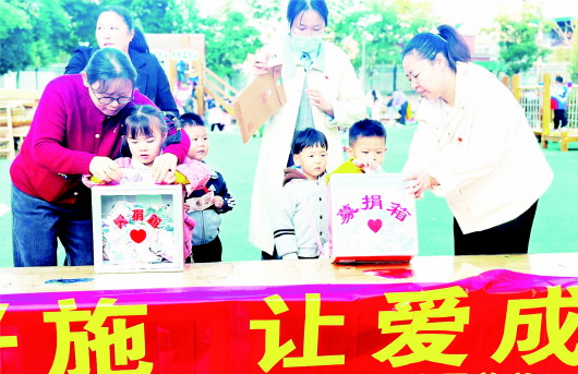为提高全体师生奉献爱心的自觉性,发扬乐善好施的精神。11月6日,裕安区天河西路幼儿园举办了一场以“乐善好施,让爱成长”为主题的慈善一日捐活动。 此次活动共筹集善款6028.3元,全额捐赠予裕安区慈善协会。园长储娟告诉记者,举行这样一场有意义的活动,目的是让孩子们深刻领悟到奉献爱心的美好力量,在他们纯真的心灵深处种下爱的种子。本报记者 袁洁 摄