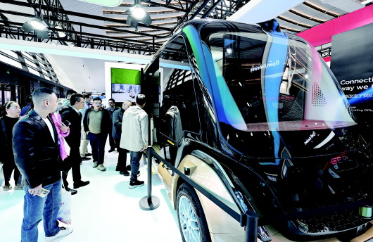 11月19日,在2024年世界互联网大会“互联网之光”博览会上,人们参观智能网联无人驾驶汽车。