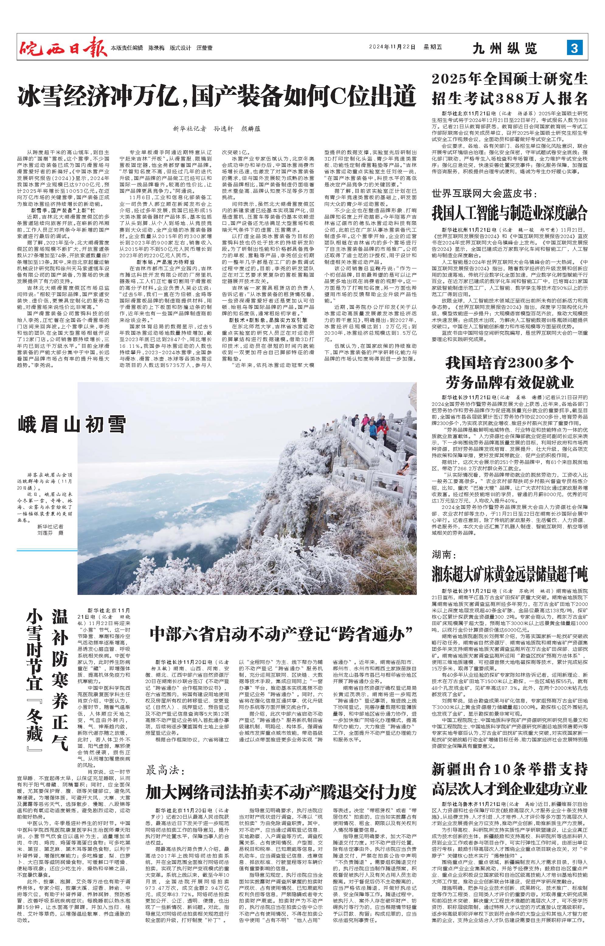 新华社杭州11月21日电(记者 魏一骏 郑可意)11月21日,《世界互联网发展报告2024》和《中国互联网发展报告2024》蓝皮书在2024年世界互联网大会乌镇峰会上发布。《中国互联网发展报告2024》显示,全国已建成近万家数字化车间和智能工厂,人工智能与制造业深度融合。 人工智能是2024年世界互联网大会乌镇峰会的一大热词。《中国互联网发展报告2024》指出,随着数字经济的升级发展和创新应用的加速落地,传统行业数字化全面加速,产业数字化转型赋能千行百业。在近万家已建成的数字化车间和智能工厂中,已培育421家国家级智能制造示范工厂,人工智能、数字孪生等技术在90%以上的示范工厂得到应用。 放眼全球,人工智能技术领域正呈现出前所未有的创新活力和竞争态势。《世界互联网发展报告2024》指出,深度学习架构优化升级,模型效能进一步提升;大规模语言模型百花齐放,推动大规模技术快速发展;合成技术出现,为解决人工智能数据训练瓶颈问题提供突破口。中国在人工智能创新潜力和市场规模等方面呈现优势。 蓝皮书由中国网络空间研究院编写,是世界互联网大会的一项重要理论和实践研究成果。