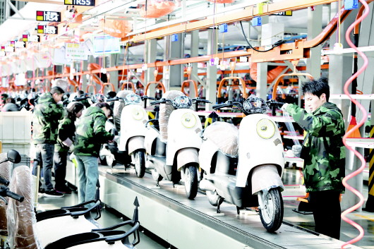 2月9日,在位于金寨县的雅迪电动车金寨高端智能制造基地,工人正在生产电动车。据悉,该基地是国内规模最大的两轮电动车高端智能制造基地,年规划产能为500万台。 2024年,安徽雅迪全年产销206万台,产值37亿元,雅迪及关联产业综合营收超过100亿元。 新年伊始,安徽雅迪以“起步即冲刺,开局即决战”的状态卯足劲头加油干,力争一季度“开门红”。 张大岗 摄