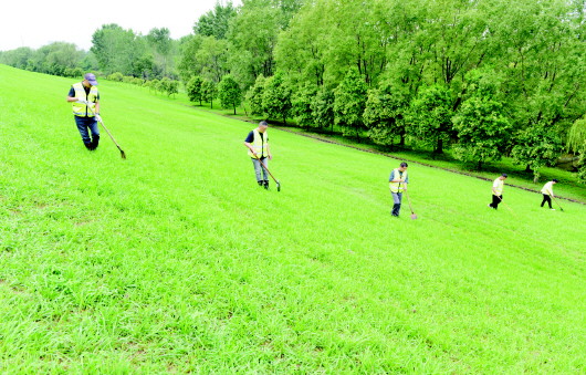受连续几日的强降雨影响,省淠史杭灌区管理总局组织防汛巡查人员巡堤查险,确保渠堤安全。 本报通讯员 蒋常虹 摄