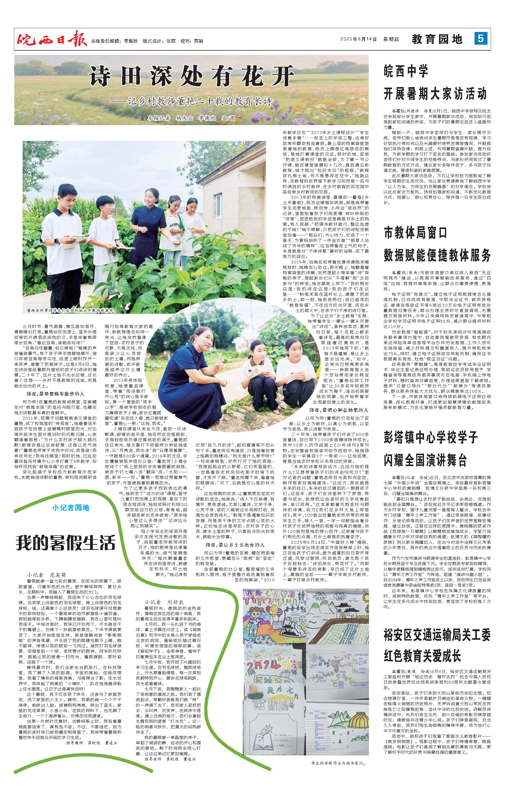 本报讯(刘德传 杨曼)8月1日,皖西中学领导及班主任来到部分学生家中,开展暑期家访活动,用实际行动架起家校沟通的桥梁,为孩子们的暑期生活注入温暖和力量。 每到一户,皖西中学老师们与学生、家长展开交流,老师们耐心地询问学生暑期作息是否有规律、学习计划执行得如何以及兴趣爱好培养发展等情况,并鼓励他们保持自律,积极上进,利用暑期查漏补缺,提升自我,为新学期的学习打下坚实的基础。参加家访活动的老师们针对不同学生的性格特点,与家长共同探讨了暑期教育的方式方法,建议家长多陪伴孩子,多与孩子沟通交流,营造和谐的家庭氛围。 此次暑期大家访活动,不仅让学校较为细致地了解学生假期的生活状况,也让家长更清晰地了解皖西中学“以人为本,为师生的发展奠基”的办学理念。学校将以此次家访为契机,持续加强家校沟通,不断优化教育方式,用爱心、耐心和责任心,陪伴每一位学生茁壮成长。