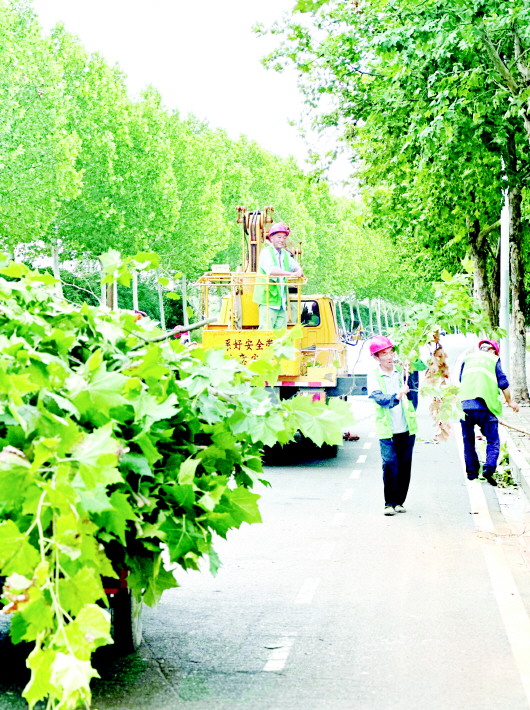 近日,园林绿化养护工人正忙着对城区主干道上遮挡路灯的树枝进行修剪。酷暑时节,树荫遮蔽了炎炎烈日,为市民带来一抹夏日清凉,但部分树枝也遮住了照明路灯、交通信号灯等,影响公共设施运行。为此,市园林绿化管理处组织开展“树挡灯”专项摸排修剪行动,发现树枝遮挡路灯及信号灯现象后,及时为大树开展“理发”作业。