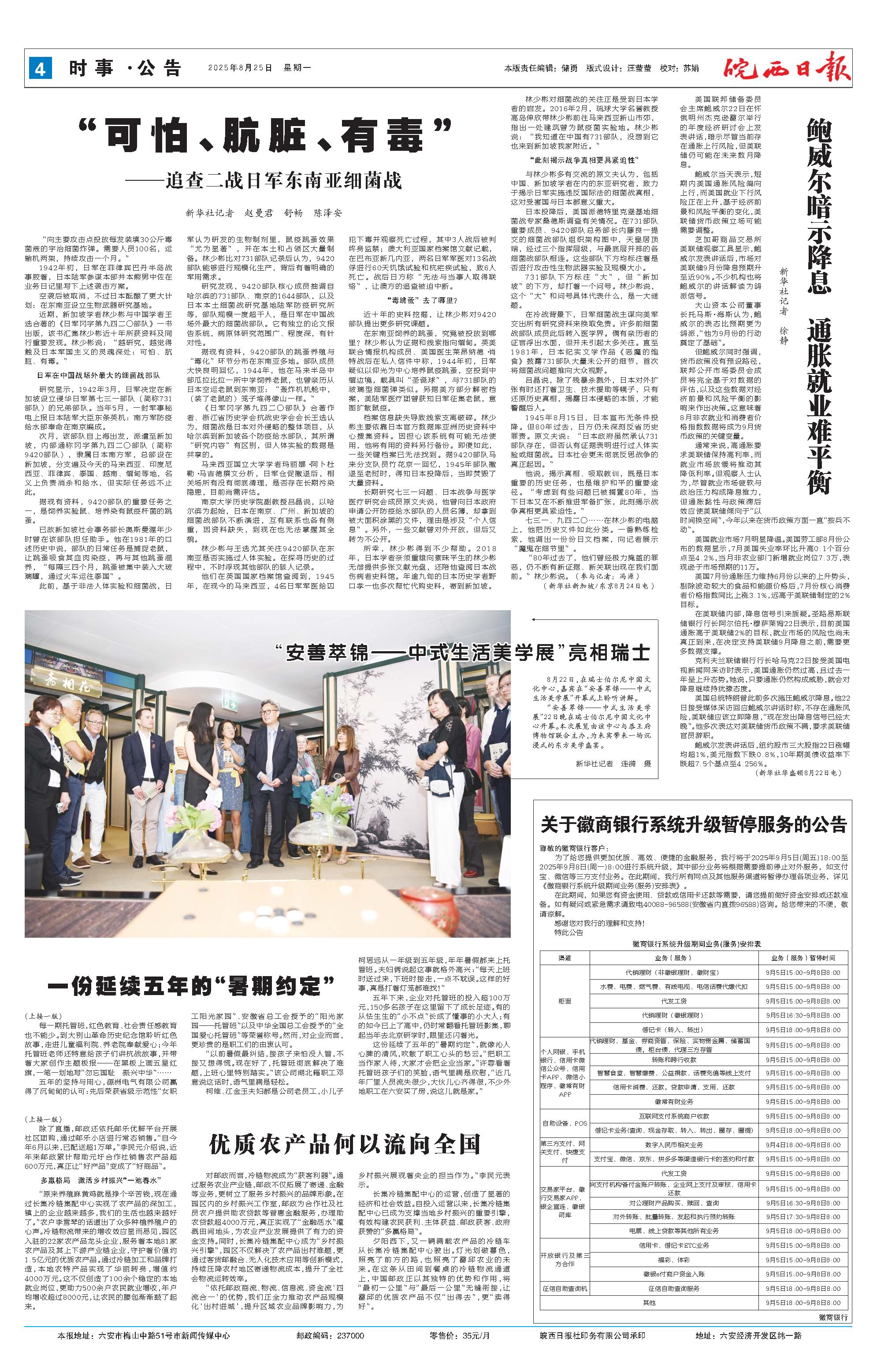 新闻 时间:2025年08月25日 来源:皖西日报