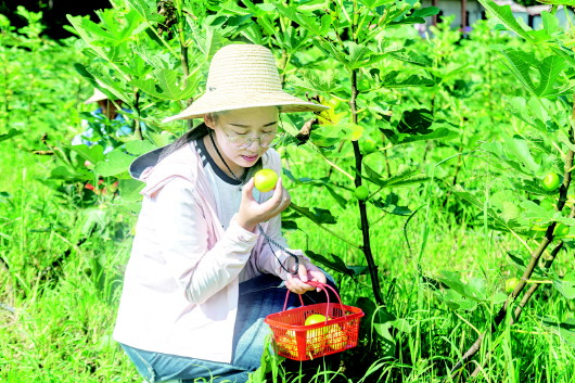 9月16日,游客在裕安区独山镇黄荆滩村的无花果基地体验采摘乐趣。 2024年,独山镇黄荆滩村通过流转脱贫户土地,让脱贫户在基地务工,引进无花果种植技术。据了解,无花果五年后进入丰产期,预计年亩产600公斤,今年是黄荆滩村无花果结果的第一年,目前市场鲜果采摘15元每斤,干果80元每斤。无花果基地不仅带动村民致富增收,还吸引很多游客前来基地采摘,体验绿色田园生活。 周宜林 摄
