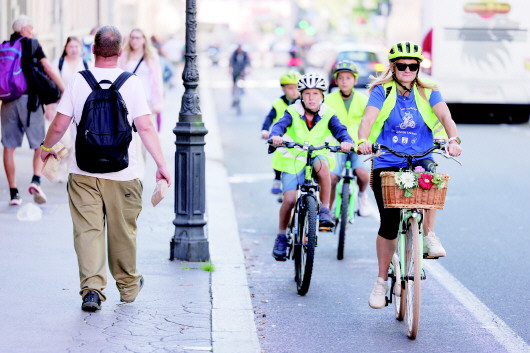9月18日,在斯洛文尼亚卢布尔雅那,学生们参加骑行教育活动,进一步了解骑行相关知识。
