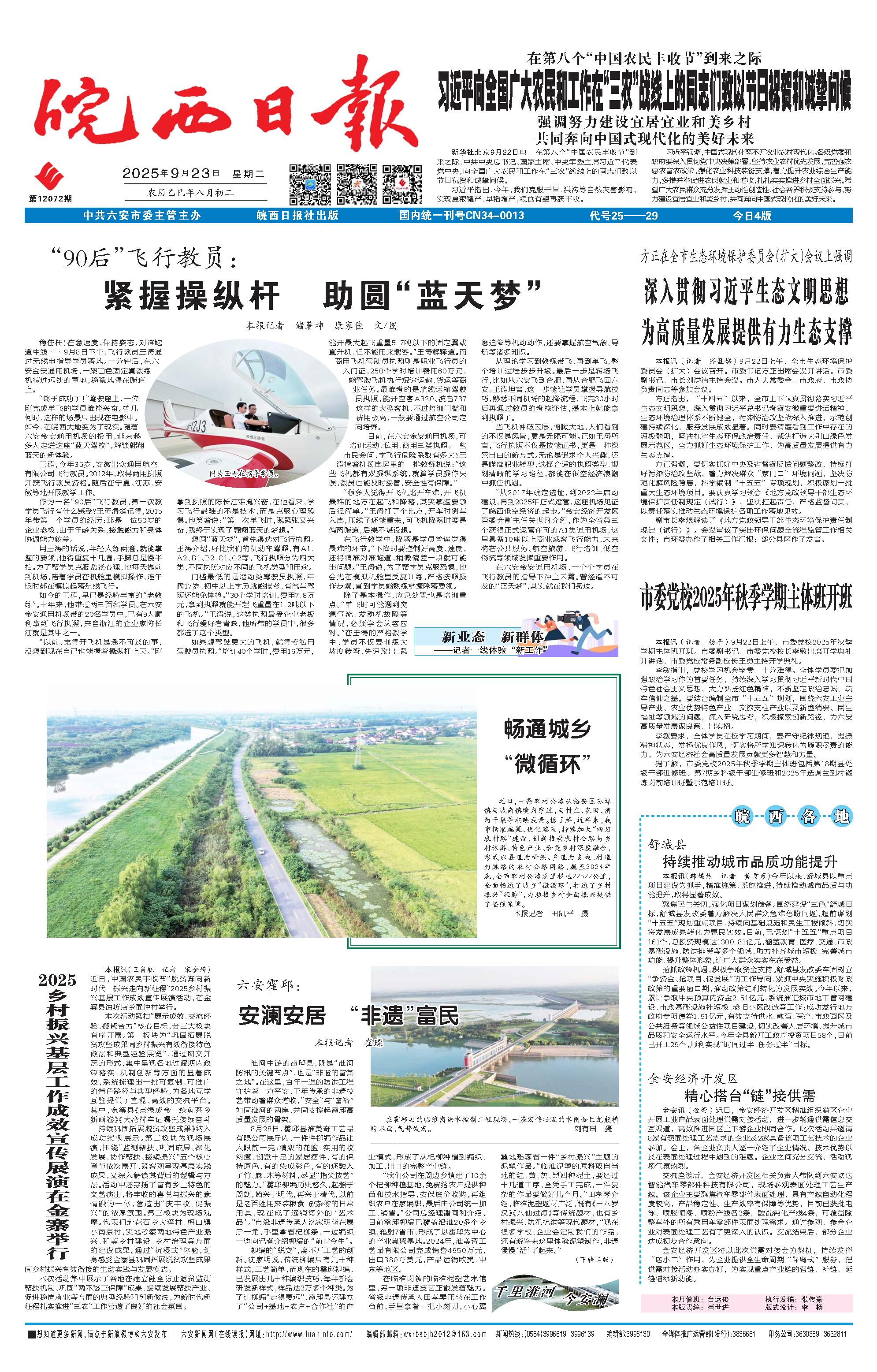新闻 时间:2025年09月23日 来源:皖西日报