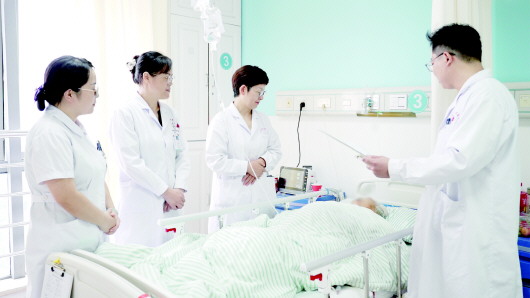 图为市人民医院妇产科医生们正在查房。
