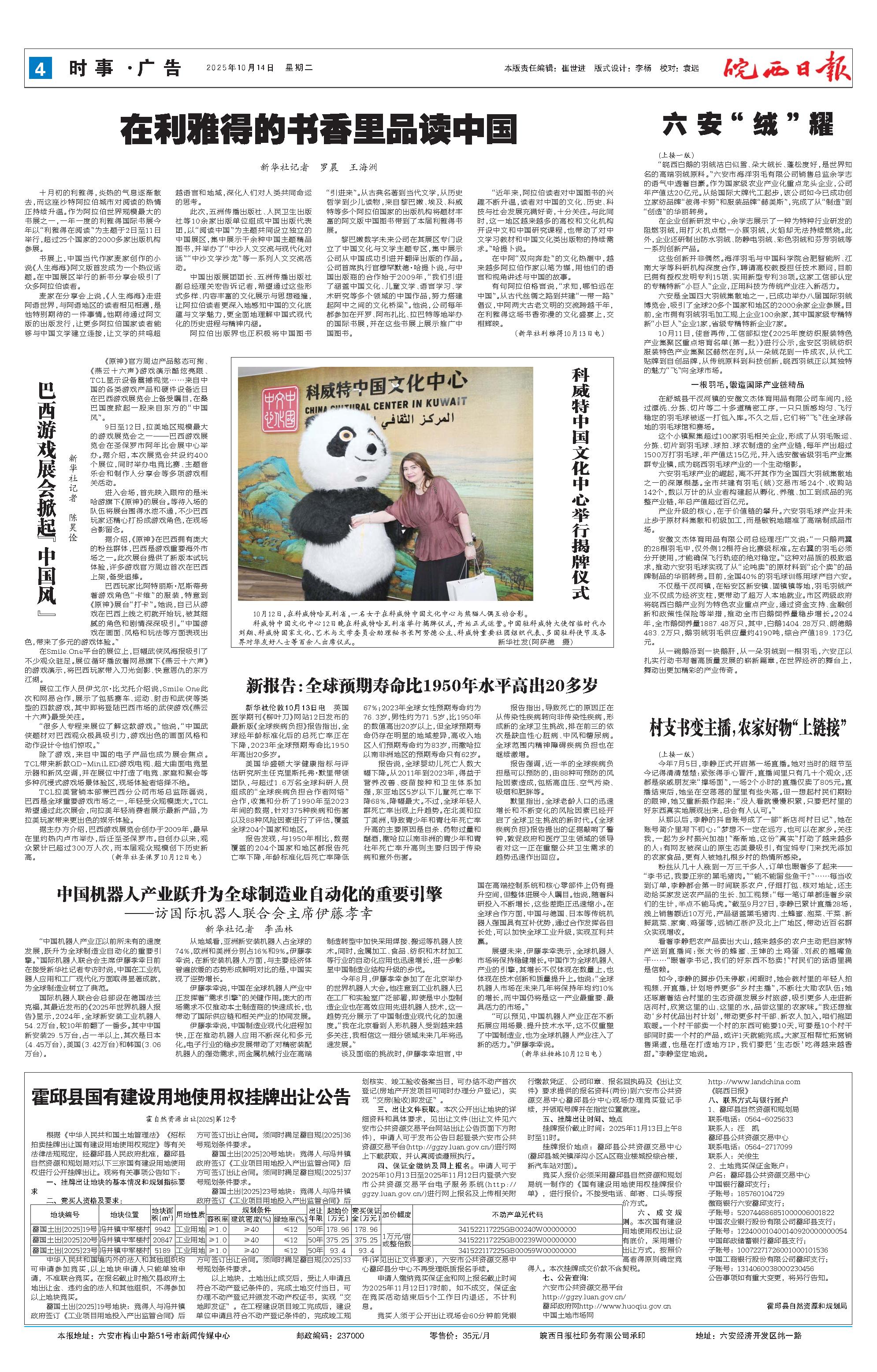 新闻 时间:2025年10月14日 来源:皖西日报
