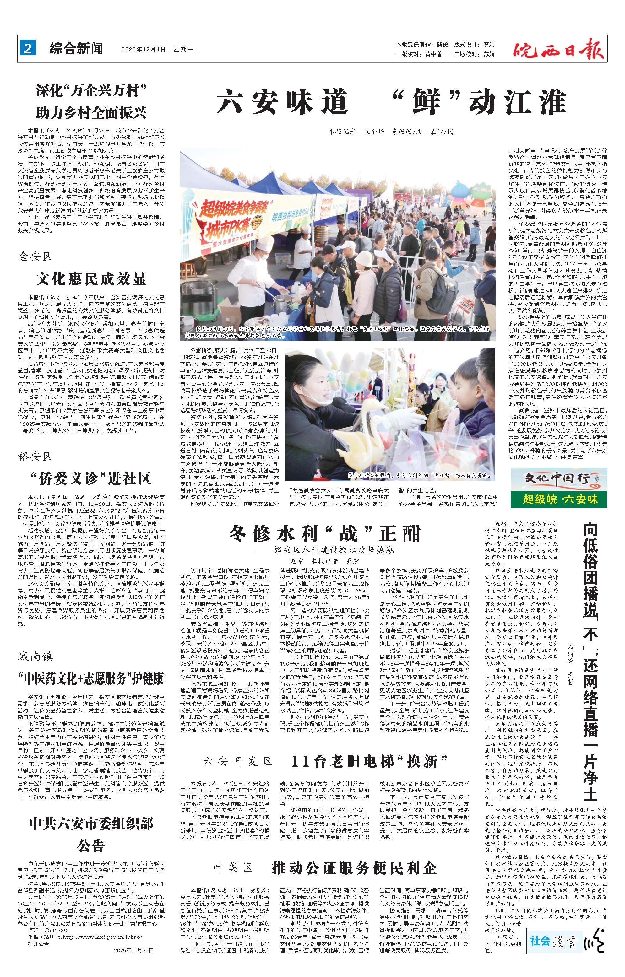 新闻 时间:2025年12月01日 来源:皖西日报