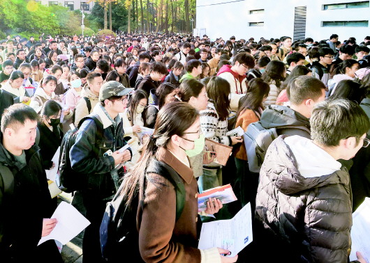 11月30日,在南京林业大学考点,考生进场准备参加考试。