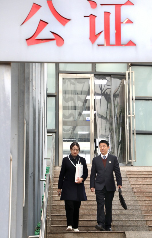 清晨,赵文兵和同事翁娟从单位出发,为行动不便的当事人上门办理业务。