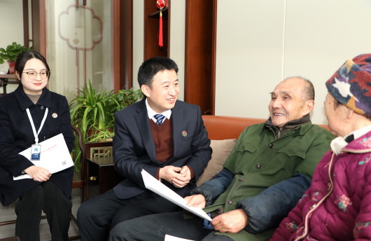 赵文兵为家住六安开发区龙泽府第小区年近九旬的应老夫妇送达公证书、解答法律问题。