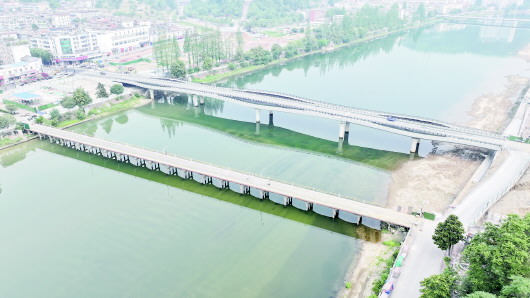 老大桥(左下)和新桥(右上)。 周坤 摄
