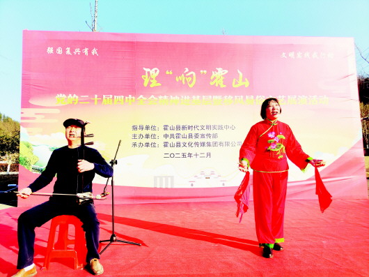 霍山讯(储菊 文/图)近日,“理响霍山”文艺展演活动先后走进但家庙镇、黑石渡镇、漫水河镇、太阳乡,以群众喜闻乐见的艺术形式,为基层群众送上多场精彩的文化盛宴。 展演走进乡镇和企业,节目的形式丰富多样,内容紧扣时代主题,融入乡村发展故事,既有激昂嘹亮的歌曲传递家国情怀,也有诙谐生动的小品倡导文明新风,更有非遗元素与政策宣讲结合的特色节目。现场掌声不断,氛围热烈。 活动不仅丰富了乡镇群众的精神文化生活,更以文艺为载体推动理论宣讲落地生根,用通俗易懂的表达让党的政策“飞入寻常百姓家”。同时,助力移风易俗,凝聚乡村振兴精神力量,为建设和美乡村注入持续的文化动能。