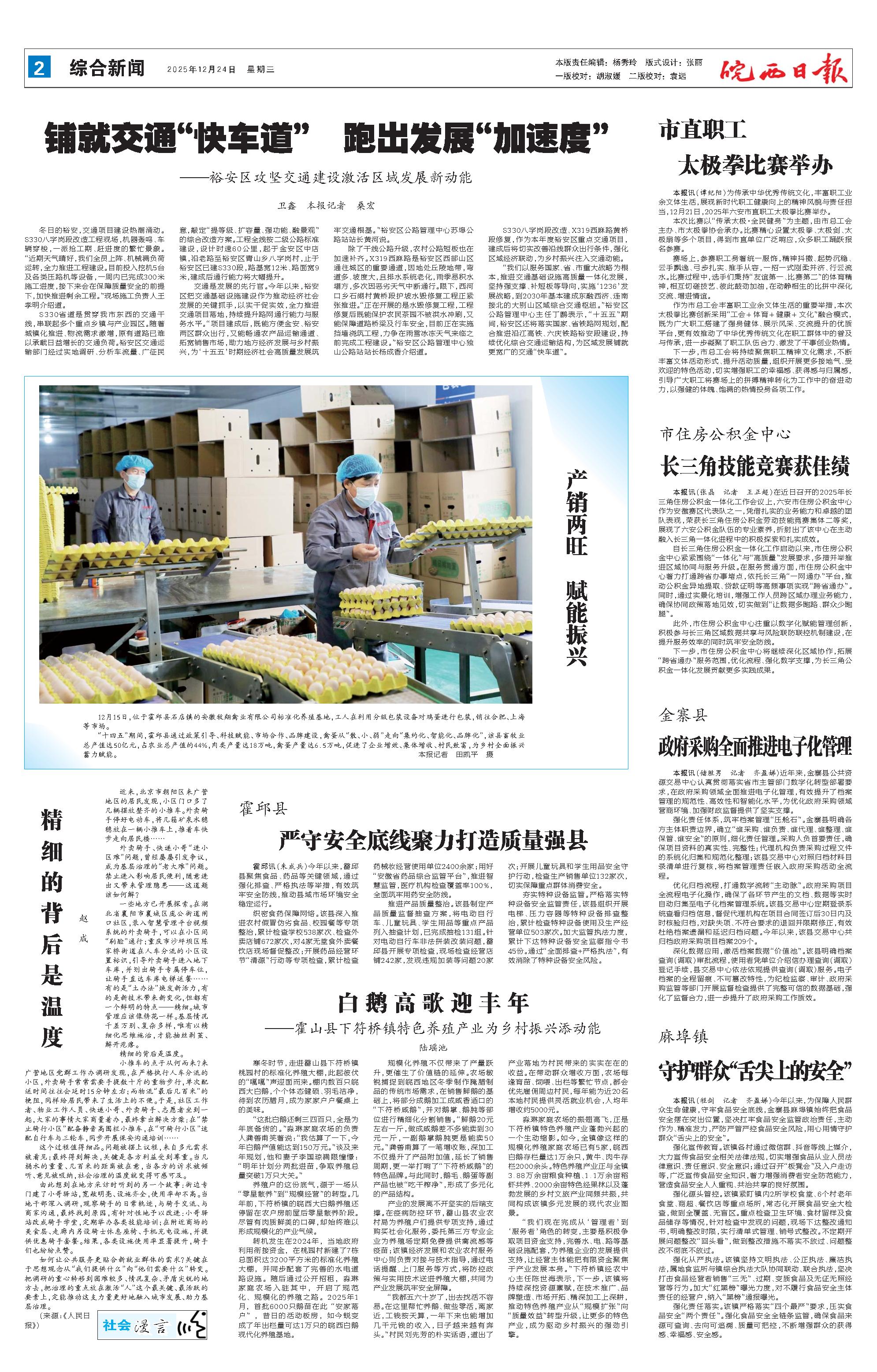 新闻 时间:2025年12月24日 来源:皖西日报