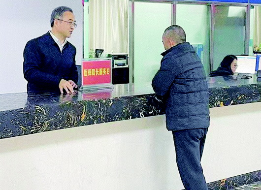 为进一步深化医保领域“放管服”改革,畅通群众诉求反映渠道,切实解决参保群众在医保经办、待遇享受、异地就医等方面的“急难愁盼”问题。近日,市医保局在市政务服务中心医保窗口开展“领导服务日”活动,面对面倾听群众心声,实打实解决问题。 张胜男 摄