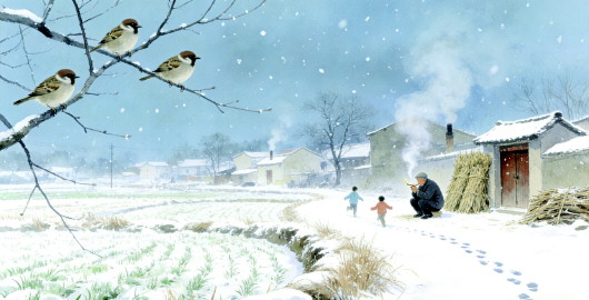 今年的第一波寒潮来得又急又猛,一不小心就踏进了寒冬。 慵懒地躺在温暖的被窝里,听着窗外呼啸的寒风,思绪一下子飘得很远很远,一直飘回到小时候的数九隆冬。 那个时候的冬夜,特别的漫长,也非常的难熬。除了人,似乎所有的生命都冬眠了。然而,就是这样的寒冬里,却有一种花儿在酝酿着春潮,那就是盛开在窗玻璃上的冰花。 才下午四点多,夜幕就裹挟着刺骨的寒冷悄然降落,整个世界除了吹着哨的西北风,一切都静悄悄的。屋外的寒气往窗户玻璃上扑,屋里的热气也顺势往上凑。就在这冷与热的交锋中,那一朵朵冰花便开始了它们如梦似幻的生命旅程。 头天夜里是看不到什么的。睡前趴在窗台上,玻璃还是透亮的,能看到靛青的天幕上那轮月亮,散发着冷冷的清辉。 因为记挂着看冰花,于是早上睁开眼没有再恋被窝子。一骨碌爬起来,先往窗户那儿瞅。呀,玻璃全白了!不是雪那样厚墩墩的白,是那种透亮、晶莹发光的白。先是窗角那儿,冒出几根细细的线,跟老树枝似的,歪歪扭扭往中间伸。伸着伸着,就分出杈来,杈上又生小杈,密密麻麻的,像极了北山上的松树林,枝枝丫丫都看得清。有时候,又不是树枝。是一团团的,像娘缝衣裳的棉线团,又像过年时挂的棉花灯,蓬蓬松松的,看着就软和。 左边还有一片“松林”,针脚细得跟真的松针似的;右边是一片“羽毛”,一层叠一层,跟家里老母鸡尾巴上的毛一样软。 正是做梦的年龄,我的世界充满了奇思妙想。看着看着,不知不觉间便进入到这玉洁冰清的童话王国之中,让自己和这些奇花异草融为一体。在这奇异的冰天雪地中,也许能遇到白雪公主和七个小矮人,邂逅那条美丽的美人鱼,还有那个可怜的卖火柴的小女孩…… “哎哟,小祖宗!快把棉袄穿上,冻着了看我不揍你!”娘在灶台上忙乎着早饭,手里攥着刷帚朝我吼着。我嘴上应着,眼睛还黏在玻璃上,心里琢磨:这冰花是怎么长出来的?莫非夜里神笔马良来过,在窗上画画了吗? 有一次,下了一夜的大雪,我也做了无数个梦。清晨,恰逢周末,窗上的冰花开得特别灿烂。好睡懒觉的我早早就爬起来了,跟几个前来找我玩的小伙伴叽叽喳喳地讨论着哪朵花更漂亮。小冬说快看快看,这里有一只白色的狐狸。“你什么眼神儿?那不明明是一条小狗么!”丁香的小脸涨得通红,据理力争着。“你俩说得都不对,这不就是俺家的小花猫吗?咦,什么时候变成白色的了?”我也加入了他俩的辩论团,都说自己说得对,一时间谁也不让谁。不一会儿,祥子那边又有了新的发现,于是,大家重归于好,又蹦又跳,那纯真无邪的笑声震落了树上厚厚的积雪,惊飞了同样叽叽喳喳的小麻雀。 忽然,身上多了一件温暖的棉袄。哦,是母亲刚刚架在炉子上烤热后披到我身上的。顿时,一股热流传遍全身。 外面的阳光越来越强,气温随着我们的嬉闹逐渐升高。窗玻璃上的花呀,树呀,松针呀渐渐变得模糊了。先是少了几根松针和一片花瓣,紧接着整朵花消失了,最后所有的花草树木都化作一颗颗晶莹的泪珠滑落下来。我想,那肯定是它们不愿离去的泪水。虽然知道明天早上还会有更加美丽的花儿开放,但是仍然有万般的不舍和失落。 不经意间,当初年少的我已经是五十多岁的中年人了。八年前,我搬离了故乡,住进了有暖气的楼房,冬天屋里暖烘烘的。每到天冷,我总会趴到宽大的玻璃窗上找呀找,盼望着能像小时候那样,忽然看见冰花悄悄开在上面,哪怕只有一朵,两朵。 然而,如今的窗子都是双层玻璃的,冰花的出现几乎为零。但是,每当它们在梦里一次又一次地盛开的时候,那份感动和惊喜,依然和少年时那样强烈。 窗上的冰花,只能开在简陋的老屋里。也许,它注定只属于那个已经遥远的故乡和年代。想起冰花,依然感觉到母亲披在我身上那件棉袄的温暖,瞬间打湿了久违的感动和思念。