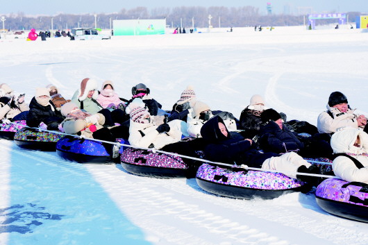 12月25日,人们在2026第八届哈尔滨松花江冰雪嘉年华园区内体验冰雪娱乐项目。