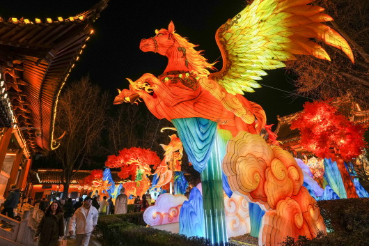 2025年12月30日,市民游客在南京市秦淮区夫子庙大成殿景点参观各种灯彩。