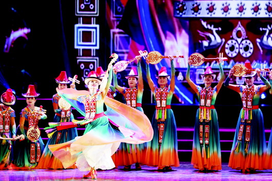 甘肃省张掖市裕固美舞蹈团的演员在甘肃省群众文艺展演展播活动首场演出中表演舞蹈(1月7日摄)。