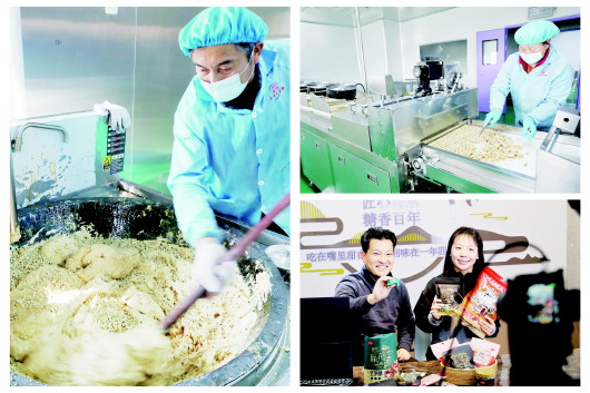 1月7日,裕安区徐集镇,工人正在制作省级非物质文化遗产传统技艺类项目——徐集花生糖。 据悉,该镇已形成“种植基地+非遗工坊+研学基地+电商平台”四位一体产业发展模式。截至2025年底,全镇已有花生糖企业10余家,年产花生糖2000多吨,年产值突破6000万元,其中电商销售占比超20%;花生糖及相关上下游产业年产值已突破1.6亿元。同时,徐集镇积极探索“企业+合作社+农户”模式,带动花生种植面积扩大至千余亩,形成从原料生产到文旅消费的完整产业链。 左图:在制糖车间,工人正在手工炒制花生糖。 右上图:新投入的切糖产线,从压制、切糖、冷却一次完成。 右下图:镇村干部在直播间里向全网推荐徐集花生糖。 本报记者 岳阳阳 摄