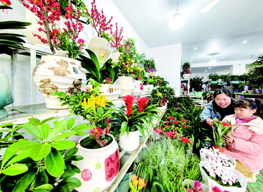 随着春节脚步临近,市城区庆安街花卉市场迎来节前购销热潮。1月12日,多家绿植鲜花店内顾客络绎不绝,寓意吉祥的花卉成为市场主角。 记者在现场看到,富贵籽、蝴蝶兰、仙客来、鸿运当头等色彩鲜艳、象征美好的花卉争奇斗艳,花香弥漫。不少市民驻足挑选,在花海间感受浓郁节庆氛围。一位正在选购的市民表示:“选几盆喜庆的花,为家里添些生气,盼个好彩头。” 本报记者 袁洁 摄