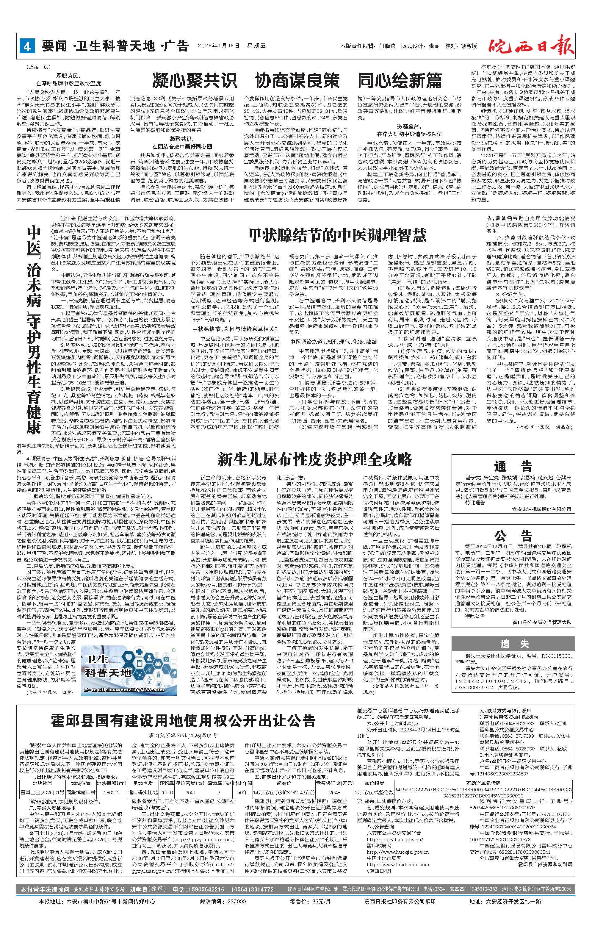 新闻 时间:2026年01月16日 来源:皖西日报