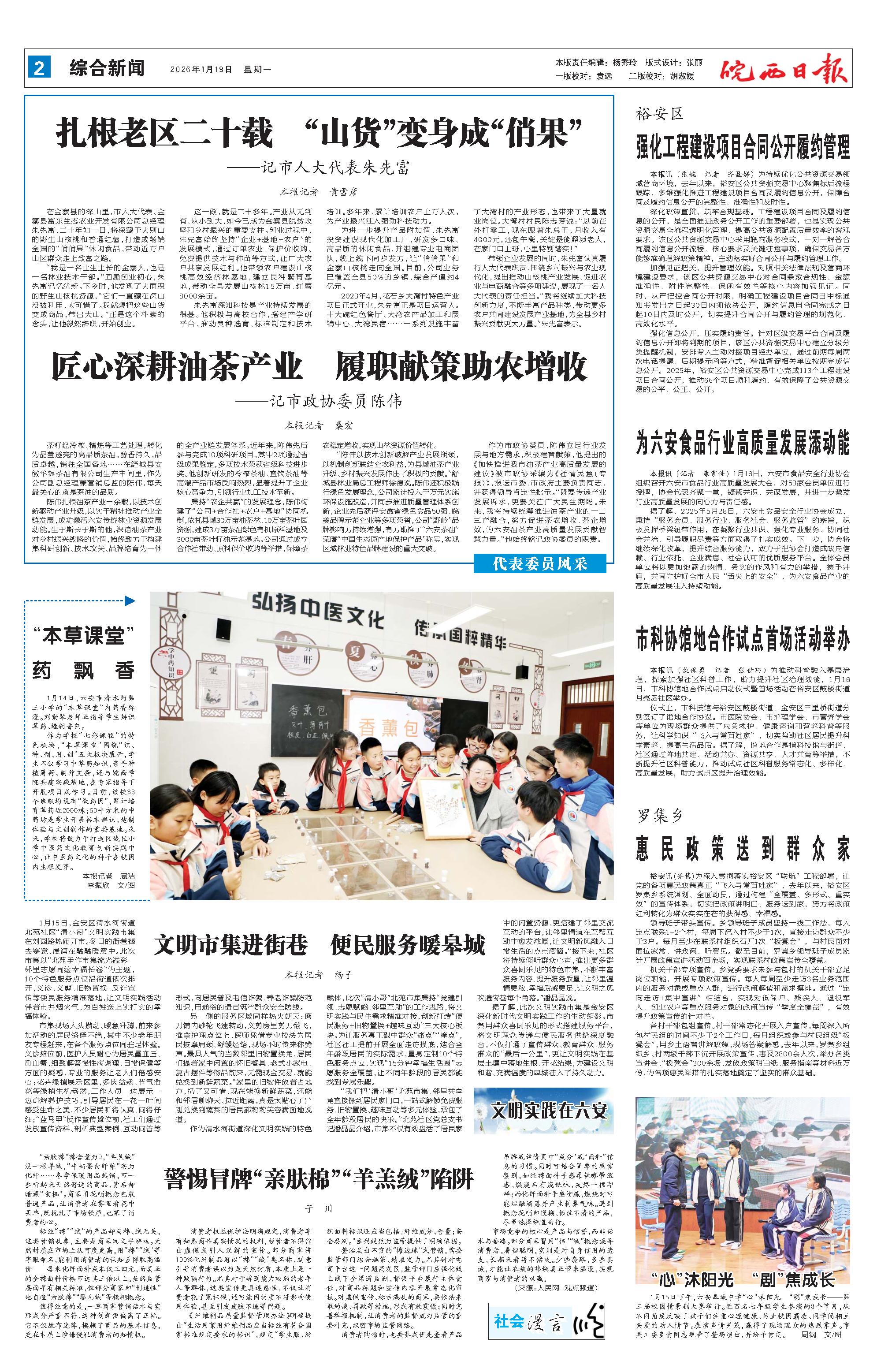 新闻 时间:2026年01月19日 来源:皖西日报