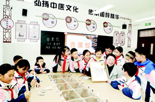 1月14日,六安市清水河第三小学的“本草课堂”内药香弥漫。刘勤琴老师正指导学生辨识草药、缝制香包。 作为学校“七彩课程”的特色板块,“本草课堂”围绕“识、种、制、用、创”五大板块展开,学生不仅学习中草药知识,亲手种植薄荷、制作艾条,还与皖西学院共建实践基地,在专家指导下开展项目式学习。目前,该校38个班级均设有“微药园”,累计培育草药近2000株;60平方米的中药坊是学生开展标本辨识、炮制体验与文创制作的重要基地。未来,学校将致力于打造区域性小学中医药文化教育创新实践中心,让中医药文化的种子在校园内生根发芽。 本报记者 袁洁 李振欣 文/图