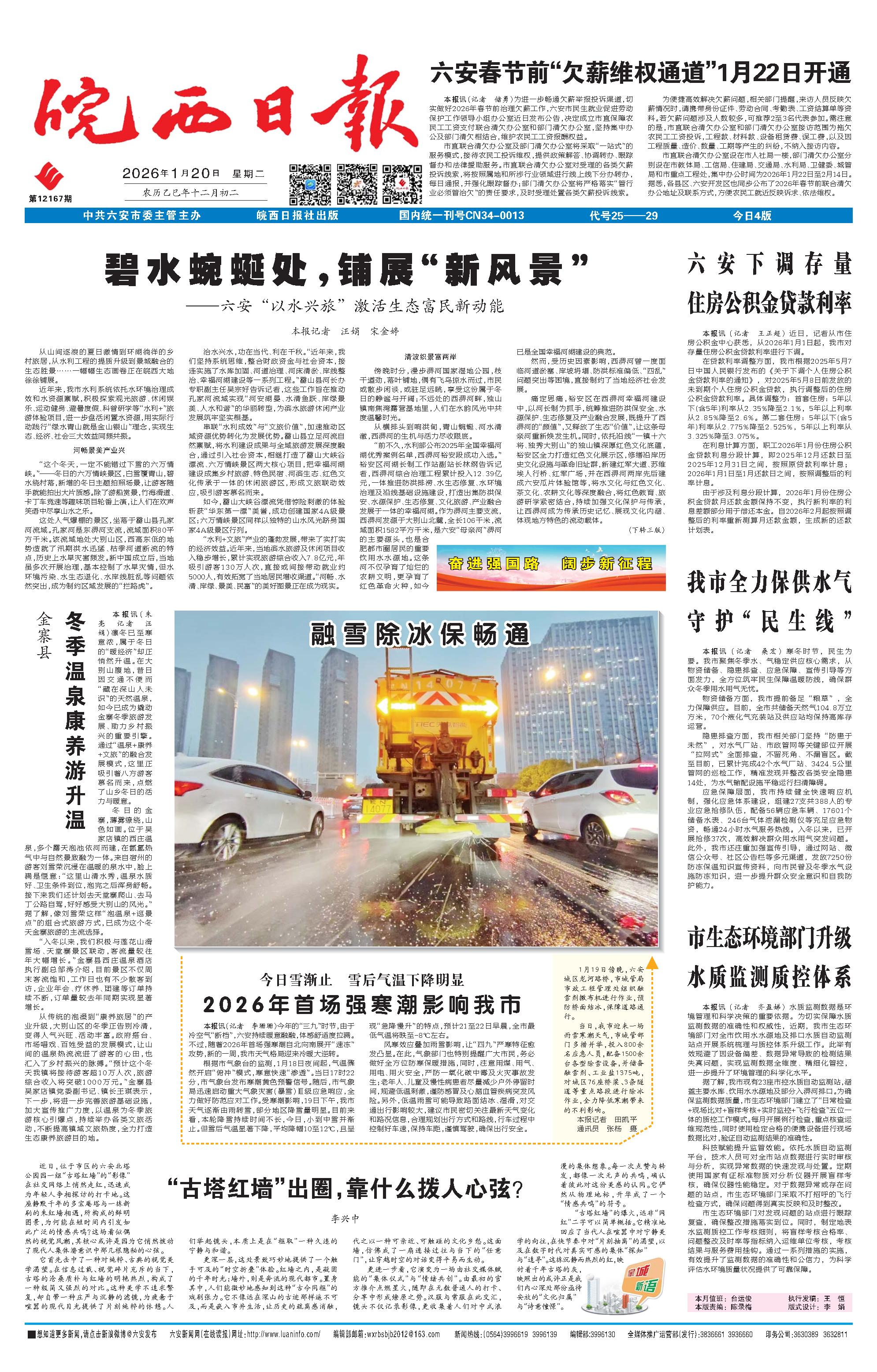 本报讯(朱亮 记者 汪娟)凛冬已至寒意浓,属于冬日的“暖经济”却正悄然升温。在大别山腹地,昔日因交通不便而“藏在深山人未识”的天然温泉,如今已成为撬动金寨冬季旅游发展、助力乡村振兴的重要引擎。通过“温泉+康养+文旅”的融合发展模式,这里正吸引着八方游客慕名而来,点燃了山乡冬日的活力与暖意。 冬日的金寨,薄雾缭绕,山色如画。位于吴家店镇的西庄温泉,多个露天泡池依河而建,在氤氲热气中与自然景致融为一体。来自宿州的游客刘雪荣沉浸在温暖的泉水中,脸上满是惬意:“这里山清水秀,温泉水质好、卫生条件到位,泡完之后浑身舒畅。接下来我们还计划去天堂寨爬山、去马丁公路自驾,好好感受大别山的风光。”据了解,像刘雪荣这样“泡温泉+逛景点”的组合式旅游方式,已成为这个冬天金寨旅游的主流选择。 “入冬以来,我们积极与莲花山滑雪场、天堂寨景区联动,客流量较往年大幅增长。”金寨县西庄温泉酒店执行副总邹涛介绍,目前景区不仅周末客流饱和,工作日也有不少散客到访,企业年会、疗休养、团建等订单持续不断,订单量较去年同期实现显著增长。 从传统的泡澡到“康养旅居”的产业升级,大别山区的冬季正告别冷清,变得人气兴旺、活动丰富。政府搭台、市场唱戏、百姓受益的发展模式,让山间的温泉热流流进了游客的心田,也汇入了乡村振兴的脉搏。“预计这个冬天我镇将接待游客超10万人次,旅游综合收入将突破1000万元。”金寨县吴家店镇党委副书记、镇长王琪表示,下一步,将进一步完善旅游基础设施,加大宣传推广力度,以温泉为冬季旅游核心引爆点,持续举办各类文旅活动,不断提高镇域文旅热度,全力打造生态康养旅游目的地。