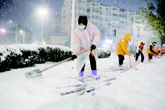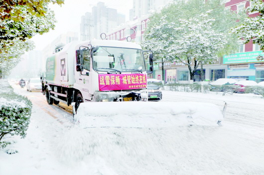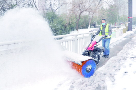 ①1月20日清晨,通过我市相关部门的密切协作,六安城区各主干道积雪陆续被清理。来往车辆在梅山路与龙河路段有序通行。 ②1月20日清晨,一辆大型环卫工程车在六安城区龙河中路清理积雪,保障交通顺畅。 ③1月20日清晨,环卫工人在六安城区响洪甸路清扫积雪,为市民出行清除障碍。 ④1月20日,工人利用手扶式扫雪车在六安城区龙河路桥清扫人行道积雪,保障市民出行。 本组图片均由 本报记者 田凯平 摄