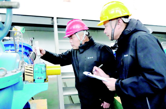1月20日,六安三峡水务有限公司第一供水厂内,工作人员正在检查关键供水设备。
