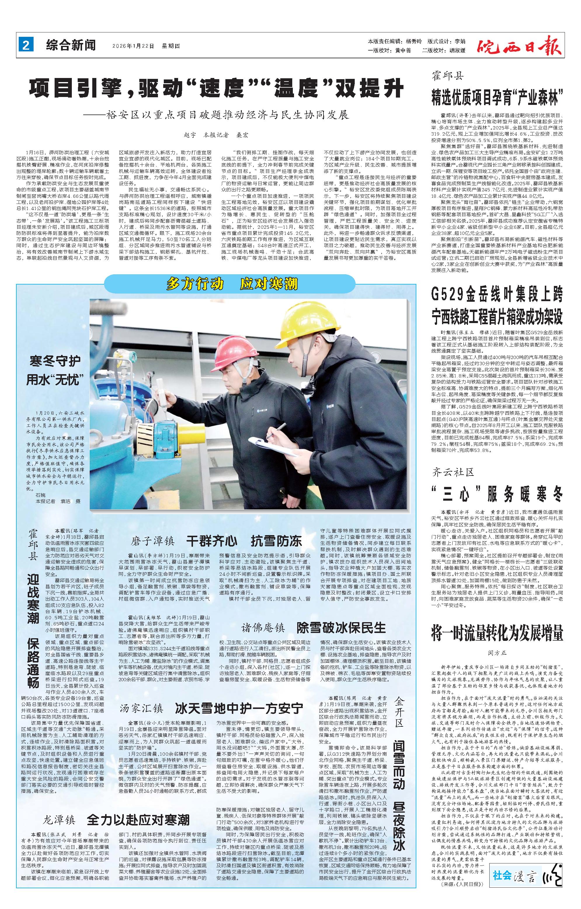 本报讯(路军 记者 宋金婷)1月18日,霍邱县启动低温雨雪冰冻灾害四级应急响应后,县交通运输部门全力防范应对恶劣天气对交通运输安全造成的危害,保障全县路网畅通和公众出行安全。 霍邱县交通运输局将全县划为若干片区,班子成员下沉一线,靠前指挥。全局共出动工作人员303人,104人组成10支应急队伍,投入82台车辆、19台铲冰机械、60.5吨工业盐、20吨融雪剂、65吨砂石,重点道口24小时值班值守。 该局组织力量对重点领域、重点区域、重点部位的风险隐患开展排查整治,对全县国省干线、重要县乡道、高速公路连接线等主干道路,特别是急弯、陡坡、临崖临水路段以及29座重点桥梁进行拉网式巡查。19日当天,全县累计投入巡查与作业人员400余人次,车辆50台次,各类专业设备19台套,巡查公路总里程超过1500公里,发现问题并现场整改20处,对13道渡口、7座港口码头落实防风防冻防滑措施。 该局集中力量优先保障国省道、区域主干道等交通“大动脉”畅通。采用机械除雪为主、人工辅助清理的方式,连续作业,及时清除路面积雪。对积雪积冰路段,特别是桥梁、坡道等关键节点,及时组织设备和人员进行重点攻坚,快速处置。建立健全应急值班和路况信息报告制度,密切关注全县路网运行状况,发现通行困难或存在重大安全风险的路段,会同公安交警部门落实必要的交通引导或临时管控措施,确保安全。