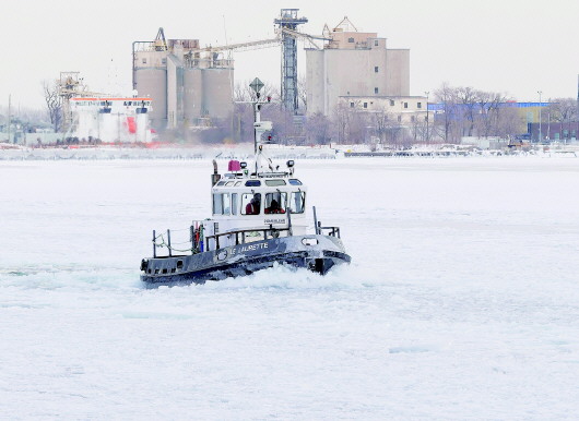 1月24日,在加拿大多伦多,一艘小船行驶在结冰的安大略湖上。