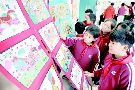 马年春节将近,六安市金安路小学的同学们以“马”为主题,通过简笔画、水粉画、版画、速写等形式,创作出充满童真童趣的马年邮票、马年台历等百余幅绘画佳作,将马的神韵与新春的喜庆巧妙融合,营造祥和浓郁的节日氛围。