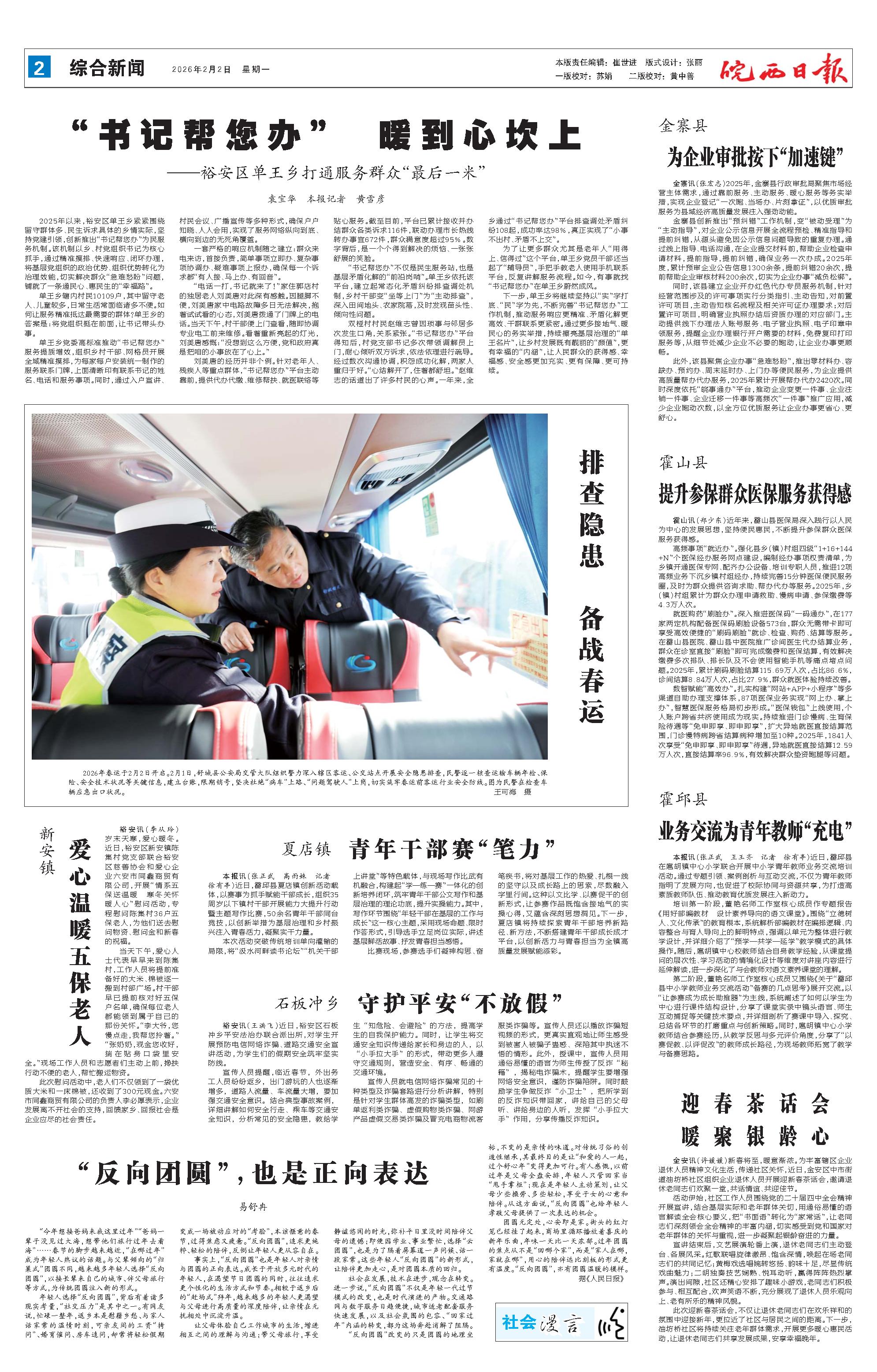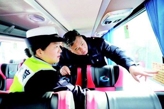 2026年春运于2月2日开启。2月1日,舒城县公安局交管大队组织警力深入辖区客运、公交站点开展安全隐患排查,民警逐一核查运输车辆年检、保险、安全技术状况等关键信息,建立台账,限期销号,坚决杜绝“病车”上路、“问题驾驶人”上岗,切实筑牢春运前客运行业安全防线。图为民警在检查车辆应急出口状况。 王可海 摄