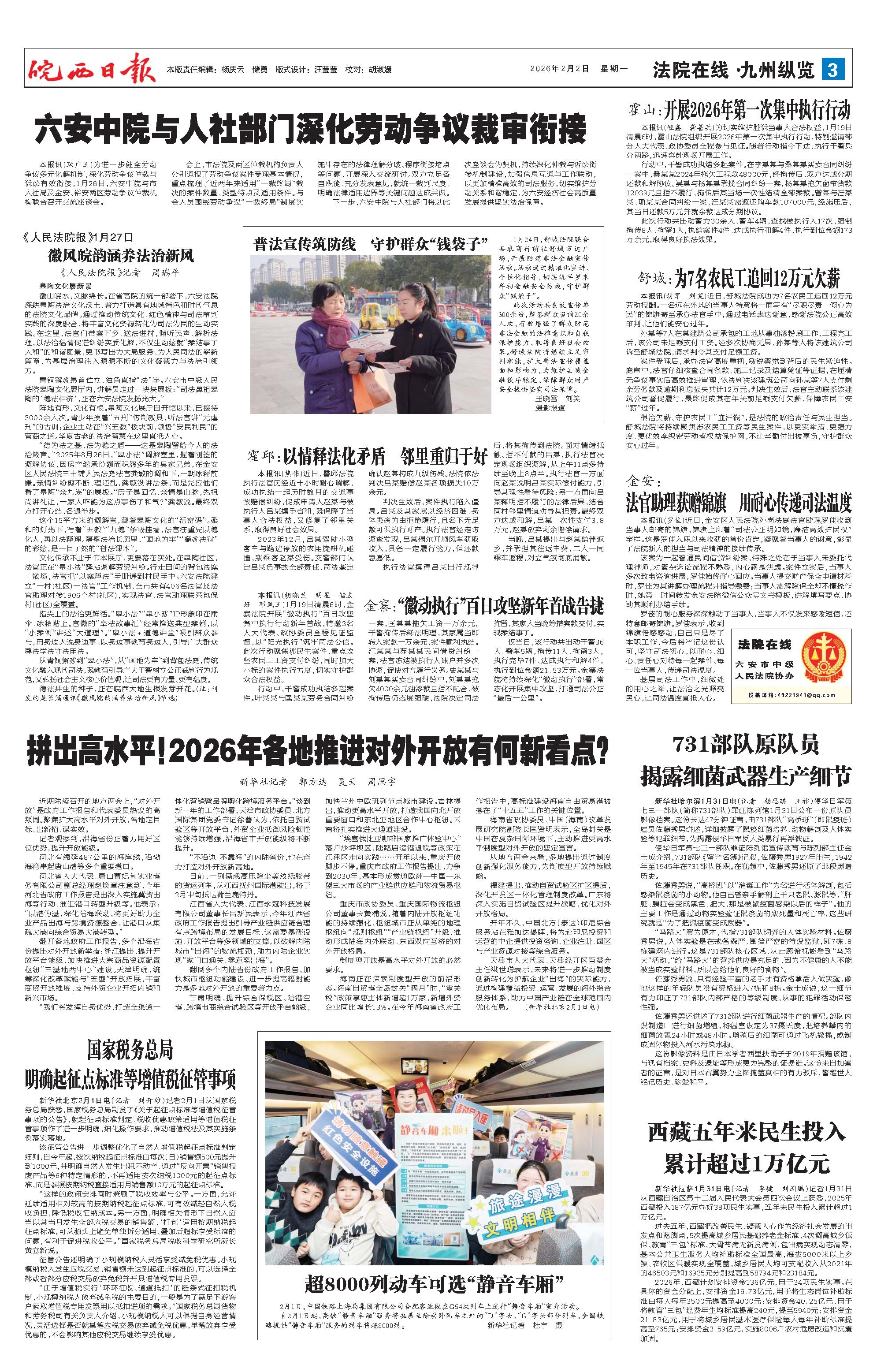 新闻 时间:2026年02月02日 来源:皖西日报