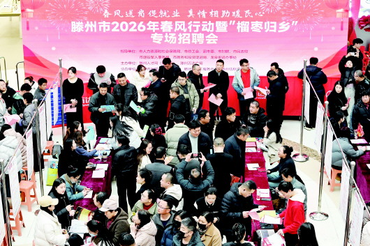 2月22日,山东省滕州市举办2026年春风行动暨“榴枣归乡”专场招聘会,吸引众多求职者前来应聘。