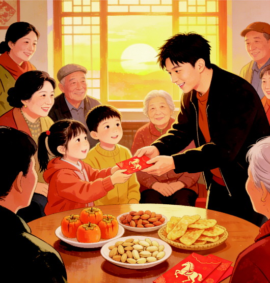 马年的春风,是踩着淮河滩未化的冻泥来的。林俊杰立在堂屋八仙桌旁,指尖轻轻抚过浆洗得平整的蓝布桌帘,只听见门外的石磙被风卷着,在空场上滚出几声沉闷的回响。 这是他退下来,回沣河乡下养老的第三个正月初一。 堂屋盖得敞亮,大梁是特意托老木匠选的老榆木,梁头雕着浅淡的马踏飞燕,暗合今年生肖。八仙桌上,柿饼码成小丘,瓜子花生盛在竹簸箕里,刚炸好的麻叶金黄酥脆,满是皖西乡下最本分的年成味道。桌角一叠红包最是惹眼,红得端正,像一簇静燃的小火。为换这叠新票子,他特意赶早班车去镇上银行,排了小半天队。红包封面上印着奔马,摸上去硬挺,带着新鲜的油墨香。 “门得开着。”他在心里对自己说。 像从前在政府大院家属楼那样。 那时的正月初一,从不用等。天刚蒙蒙亮,楼道里的脚步声便如潮水涌来,亲戚的嗓门、同事的笑、邻居孩子的闹,挤在那间不大的屋子里,空气里都是糖甜与烟火气。他坐在沙发上,一手攥着红包,听一声声“林主任新年好”,心里暖得发烫。那是热闹,是体面,是被人围着的人间滚烫。 如今退了,城里屋子憋屈,他便回沣河,盖了这一院气派砖瓦房,院墙雪白,门楼端正。原以为,年该过得更敞亮、更热闹。 晨光从东窗斜斜切进来,在门槛上投下一道细长的影。林俊杰搬一把藤椅,守在门墩旁,目光越过晒谷场,落在村口新修的水泥路上。路平整如带,一直伸向远处的杨树林,安静得没有半个人影。 他等。 等第一个踏进门来的人,等那一声迟来的拜年。 日头从东移到南,又缓缓斜向西天。桌上麻叶软了,柿饼落了一层薄尘。风从敞开的大门灌进来,掀动桌帘,哗啦轻响,像有人在无人处轻轻翻书。 村里广播响过三回,先是马年的歌,后是村干部喊人领春联。远处零星鞭炮声,孩童嬉闹声,声声都在村巷里飘,唯独这敞亮堂屋,静得能听见自己的心跳。 乡村的冷清,是从骨头缝里渗出来的凉。人一退,院子就空了。林俊杰望着满桌瓜果、一叠红包,忽然觉得,这些精心准备的热闹,像一场无人应和的独白。 人这一辈子,多像沣河里的水。涨时浩浩荡荡,退时悄无声息,连个脚印都留不下。 夕阳把他的影子拉得很长,贴在青石板上,像一张被岁月揉皱又摊平的纸。 林俊杰轻轻叹口气,起身,准备关门。 就在这时,院门外传来脚步声。 很轻,很碎,像春雨落在窗台上。 他猛地抬头。 门口站着村西头的王老太,挎一只旧竹篮,篮上盖着洗得发白的蓝花布。去年冬天她摔了腿,是他开车送进镇卫生院的。 “林老师,给您拜年了。”老人声音沙哑,扶着门框慢慢挪进来,“我腿不利索,来晚了。” 林俊杰连忙上前,接过竹篮:“大娘,快进来坐。” 王老太掀开蓝花布,里面是几个刚蒸好的糯米团子,还冒着温气,带着竹篮的清香气。“没啥好拿的,今早新蒸的,加了红豆沙,想着你爱吃。” 她从衣兜里慢慢摸索,掏出一方手帕,一层层打开,里面是一张崭新的十元钱。 “这是给您的红包。”老人把钱往他手里塞,“马年,小辈给长辈拜个年,图个平安。我无儿无女,你就是我的亲人。” 林俊杰的手,一下子僵在半空。 他看着老人布满皱纹的脸,看着那张被手帕捂得平整的十元钱,又望向桌角那叠印着奔马的厚红包,心口忽然一热。 他原以为,这一年的拜年,终究是空等。 却不知,最真心的那一声,来得最晚,也最沉。 林俊杰拿起桌角最厚的一个红包,轻轻塞进王老太手里:“大娘,这是我给你的。马年,愿你腿脚利索,身子硬朗。” 老人推辞,他按住她的手,只说:“年的规矩,不能破。” 夕阳余晖漫进堂屋,落在一老一少身上,暖得柔和。糯米香、瓜果甜,在空气里慢慢散开。 林俊杰忽然懂了。 人间真正的热闹,从来不是职位与体面堆出来的。 就像这沣河的水,涨也好,落也罢,真正滋养土地的,从来都是那一点不动声色的温良。 门外风依旧吹,石磙在空场上又轻滚一声。 这一回,他听着,只觉得格外安稳,格外好听。