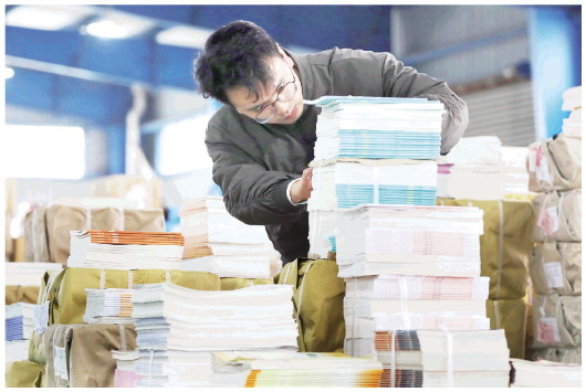 2月27日,市新华书店教材仓库内,工作人员穿梭在“书山”中,忙而有序地整理、核对、封装、贴标、发送教材,确保新学期开学时学生能及时领到新教材。据了解,春季新学期开学在即,市新华书店针对不同学校、年级、科目的征订量和部分年级将全部使用新版教材的要求,实时跟踪出版进度和到货时间,按照“随到随卸、随卸随分、随分随发”的原则,组织工作人员加班加点对陆续运抵的新学期教材进行搬运、分类、整理,优化配送,确保教材在开学前全部精准送达。据悉,春学期开学,市新华书店将对金安区、裕安区各中小学校配送教材教辅约260万册。