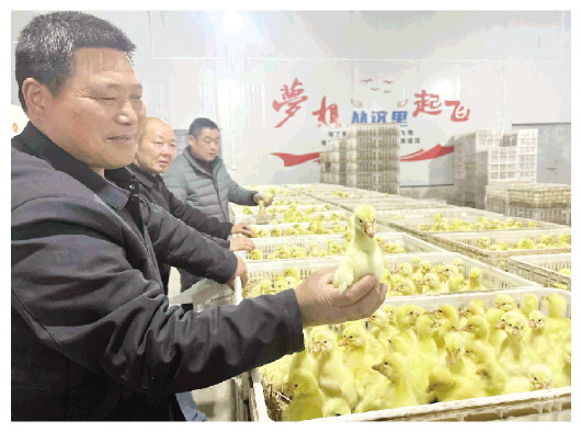 春雨绵绵,万物复苏。3月1日一大早,位于裕安区固镇镇的皖西白鹅原种基地,清点声、装车声、鹅苗的叫声交织在一起。“5只、10只……好了,正好2000只。”来自周边县区乃至河南省固始县的皖西白鹅养殖大户,忙着清点、领取今年首批出壳的鹅苗。 一只只毛茸茸,拳头大小的雏鹅,挤在一起嘎嘎叫。随即便被一双双温暖的手捧起,轻轻放进铺好稻草的运输筐,然后搬上小货车,驶向皖西周边及外地养殖场。 “个头匀称,精神头足,这苗好!”霍邱县岔路镇养殖户宋宝,一边往车上搬筐,一边乐呵呵地说。去年出栏12000只,尝到了甜头。“认准了这个原种,养出来壮实,不愁卖。”他的话语里,满是对新一年的期盼。 不远处,一辆挂豫S牌照的越野车驶入基地。来自河南省固始县的养殖大户顾进东,驱车两小时专程赶来,一下车就直奔鹅苗孵化区。“乡亲们都知道,养皖西白鹅,就得来固镇镇找原种。”他指着已装车的1500只鹅苗,信心十足地说:“这鹅长得壮,羽毛白净,品质又好,销售从来不用愁。” 本地养殖户更是近水楼台先得月。固镇镇养殖户刘明花养鹅13年,自家有种蛋但缺设备,常年依托基地孵化,今年首批托育2000多只皖西白鹅。养殖户杨道玉称,2025年鹅苗全由基地供应,出栏3万多只,鹅毛都被镇上深加工企业抢着收走了。 基地负责人江卫军忙得不可开交,看着一车车满载希望的鹅苗驶离,他感慨地说:“经过一个月的紧张孵化,基地今年首批2万多只鹅苗顺利出壳了。这只是一个开始,全年我们要孵化30批,鹅苗总量达300多万只。” 谁能想到,昔日的皖西白鹅养殖受传统孵化技术限制,农户多采用自抱自孵模式,受精蛋孵化率低、成活率不稳,养殖效益不高,产业难以规模化、品牌化发展。为打破瓶颈,江卫军带领团队赴高校与科研院所学习,历经两年多、上百次试验,成功攻克种蛋科技孵化难关。如今,受精蛋电器孵化出壳率达92.4%,鹅苗成活率稳定在95%以上。这一突破,为皖西白鹅产业发展插上了规模化的“翅膀”。 科技翅膀硬,产业腾飞高。作为国家水禽良种扩繁推广基地和国家级畜禽养殖标准化示范场,这里已不仅是简单的孵化场。江卫军与大学及科研院所紧密合作,从良种繁育到种鹅培育,全程跟踪服务,手握22项实用型专利和6项发明专利,让皖西白鹅良种“基因更优、体质更强”,带动1000多户养殖户,户年均增收超10万元。 一只鹅,激活一条链;一片羽,闯出大市场。从原种基地出发约8分钟车程,便是六安市星辰羽业有限公司。如果说原种场是白鹅产业的“源头活水”,那么这里便是将资源优势转化为市场优势的“魔术工坊”。 分级、插球、扎线、上胶、检测……数十道精细工序,将皖西白鹅优质羽毛,变成赛场上轻盈飞舞的羽毛球。车间内机器轰鸣、工人忙碌,一片产销两旺的火热景象。 “我们扎根这里,看中的就是本地优质的皖西白鹅资源。”六安市星辰羽业有限公司总经理潘显平表示,企业2011年成立至今,在市场布局上,构建了“自有品牌+国际代工+外贸出口”的多元格局:自有品牌“乐翎”,同时为国际知名品牌提供代工服务,在外贸出口方面,产品畅销韩国、马来西亚等国家和地区。 “目前,我们年产鹅毛、鸭毛羽毛球200万打,年产值1.1亿元。2025年,公司通过EQS质量产品体系认证,拥有多项自主研发专利,并完成了安徽省高新技术企业认证。”潘显平自豪地说,皖西白鹅的价值,在这一环扣一环的产业链中被不断放大。 从原种保护到科技孵化,从规模养殖到精深加工,皖西白鹅已形成完整产业链条。《六安市加快鹅产业跃迁式发展实施方案》提出,到2027年全市鹅饲养量将突破3000万只,鹅产业及羽绒羽毛产业综合产值将跨越300亿元大关。从固镇镇出发,一只只皖西白鹅“叫”响了乡村振兴致富曲,“飞”向了海内外大市场。