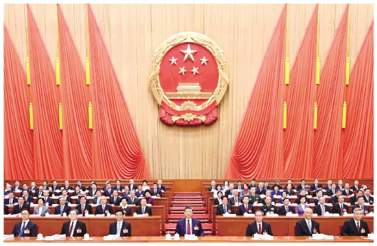习近平王沪宁蔡奇丁薛祥李希韩正等在主席台就座 李强作政府工作报告 赵乐际主持大会 审查“十五五”规划纲要草案 听取关于生态环境法典草案、关于民族团结进步 促进法草案、关于国家发展规划法草案的说明等