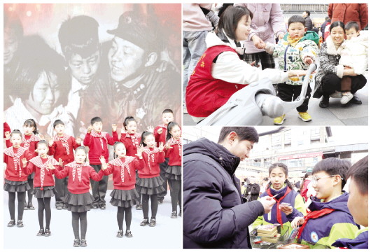 左图:六安市解放路小学的少先队员们在演唱歌曲《学习雷锋好榜样》。