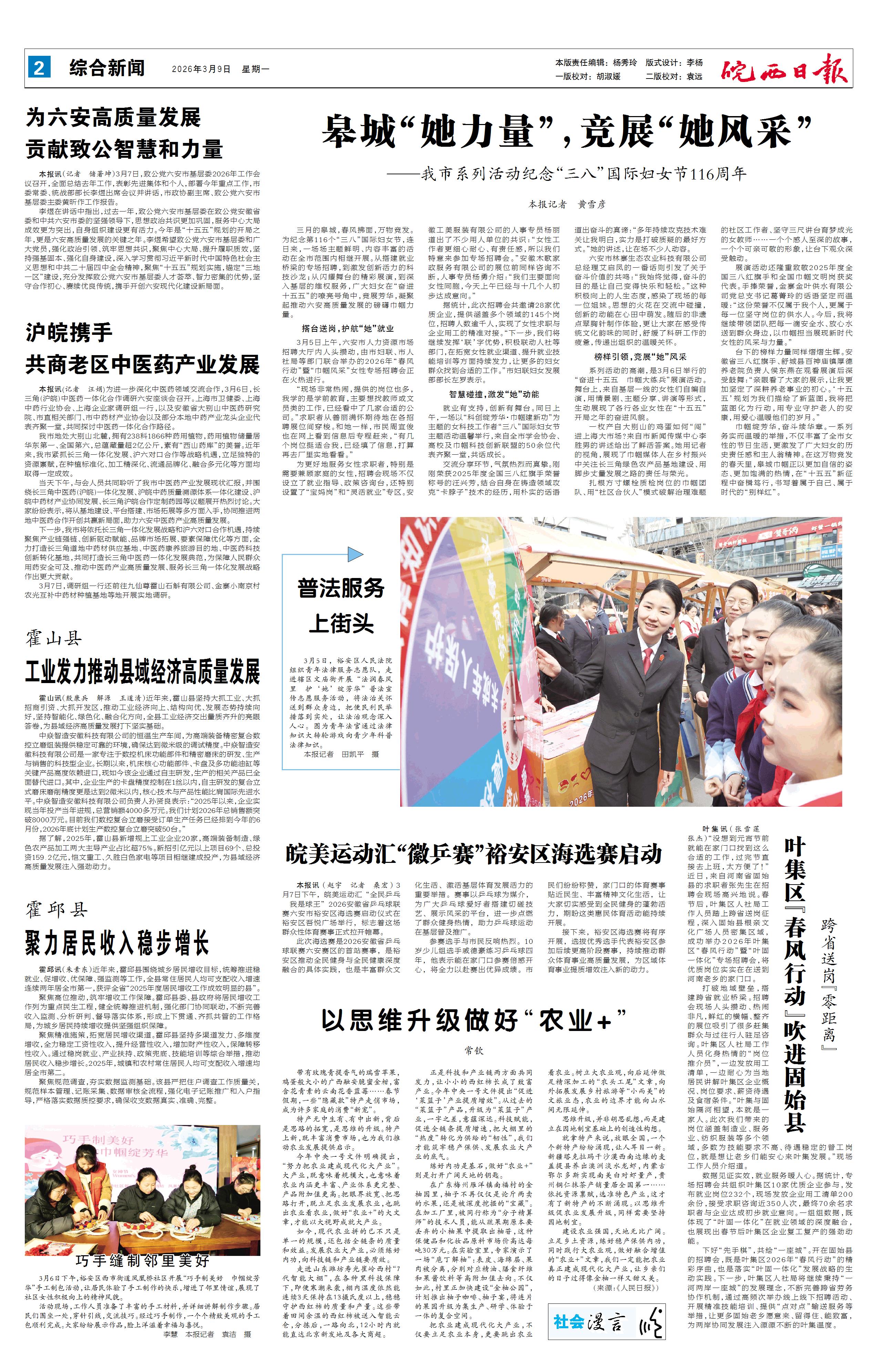 新闻 时间:2026年03月09日 来源:皖西日报