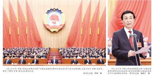 新华社北京3月11日电 中国人民政治协商会议第十四届全国委员会第四次会议圆满完成各项议程,11日上午在人民大会堂闭幕。会议号召,人民政协各参加单位和广大政协委员要更加紧密地团结在以习近平同志为核心的中共中央周围,勠力同心、勇毅前行,坚定不移走中国特色社会主义道路,为以中国式现代化全面推进强国建设、民族复兴伟业作出新的更大贡献。 会议由全国政协主席王沪宁主持。全国政协副主席石泰峰、胡春华、沈跃跃、王勇、周强、帕巴拉·格列朗杰、何厚铧、梁振英、巴特尔、苏辉、邵鸿、高云龙、穆虹、咸辉、王东峰、姜信治、蒋作君、何报翔、王光谦、秦博勇、朱永新、杨震在主席台前排就座。 习近平、李强、赵乐际、蔡奇、丁薛祥、李希、韩正等在主席台就座。 上午9时,闭幕会开始。王沪宁宣布,中国人民政治协商会议第十四届全国委员会第四次会议应出席委员2125人,实到2059人,符合规定人数。 会议通过了政协第十四届全国委员会第四次会议关于常务委员会工作报告的决议、政协第十四届全国委员会第四次会议关于政协十四届三次会议以来提案工作情况报告的决议、政协第十四届全国委员会提案委员会关于政协十四届四次会议提案审查情况的报告、政协第十四届全国委员会第四次会议政治决议。 王沪宁在讲话中说,全国政协十四届四次会议是一次高举旗帜、凝心聚力、求实奋进、风清气正的大会,生动展现了广大政协委员为国履职、为民尽责的责任担当,充分彰显了社会主义协商民主的独特优势和生机活力。中共中央总书记、国家主席、中央军委主席习近平等党和国家领导同志出席大会开幕会和闭幕会,看望政协委员并参加联组讨论,同政协委员们共商国是。全体政协委员认真讨论政府工作报告、“十五五”规划纲要草案和其他报告,认真审议政协常委会工作报告和提案工作情况报告等文件,取得丰硕成果。全体政协委员充分认识过去一年和“十四五”时期极不寻常、极不平凡的发展历程以及来之不易、殊为珍贵的发展成就,决心为新时代新征程推进中国式现代化、不断续写经济快速发展和社会长期稳定两大奇迹新篇章作出更大贡献。 王沪宁表示,2026年是“十五五”开局之年,中国共产党正带领亿万人民满怀信心行进在中国式现代化新征程上。人民政协要立足自身性质定位和职责使命,坚持中国共产党的领导,加强理论武装,更好发挥人民政协的政治组织作用、更好发挥人民政协的建言资政作用、更好发挥人民政协的凝心聚力作用,为“十五五”开好局、起好步广泛凝聚人心、凝聚共识、凝聚智慧、凝聚力量。把服务和助力“十五五”规划实施作为履职主线,贯穿政治协商、民主监督、参政议政各项工作之中,聚焦经济社会发展中的重大问题深化前瞻性研究和战略性思考,努力做到察形势之变、识问题之要、谋管用之策。坚持人民政协为人民,多建利民之言,多做惠民之事,推动现代化建设成果造福全体人民,广泛汇聚海内外中华儿女奋进新征程、建功新时代的强大正能量。 王沪宁表示,让我们更加紧密地团结在以习近平同志为核心的中共中央周围,勠力同心、拼搏进取,为全面推进社会主义现代化强国建设而不懈奋斗。 出席闭幕会的领导同志还有:王毅、尹力、刘国中、李干杰、李书磊、李鸿忠、何立峰、陈文清、陈吉宁、陈敏尔、袁家军、黄坤明、刘金国、王小洪、张升民、王东明、肖捷、郑建邦、丁仲礼、蔡达峰、何维、武维华、铁凝、彭清华、张庆伟、洛桑江村、雪克来提·扎克尔、吴政隆、谌贻琴、张军、应勇等。 中共中央、全国人大常委会、国务院有关部门负责同志列席闭幕会。外国驻华使节、海外华侨等应邀参加闭幕会。 大会在雄壮的国歌声中闭幕。