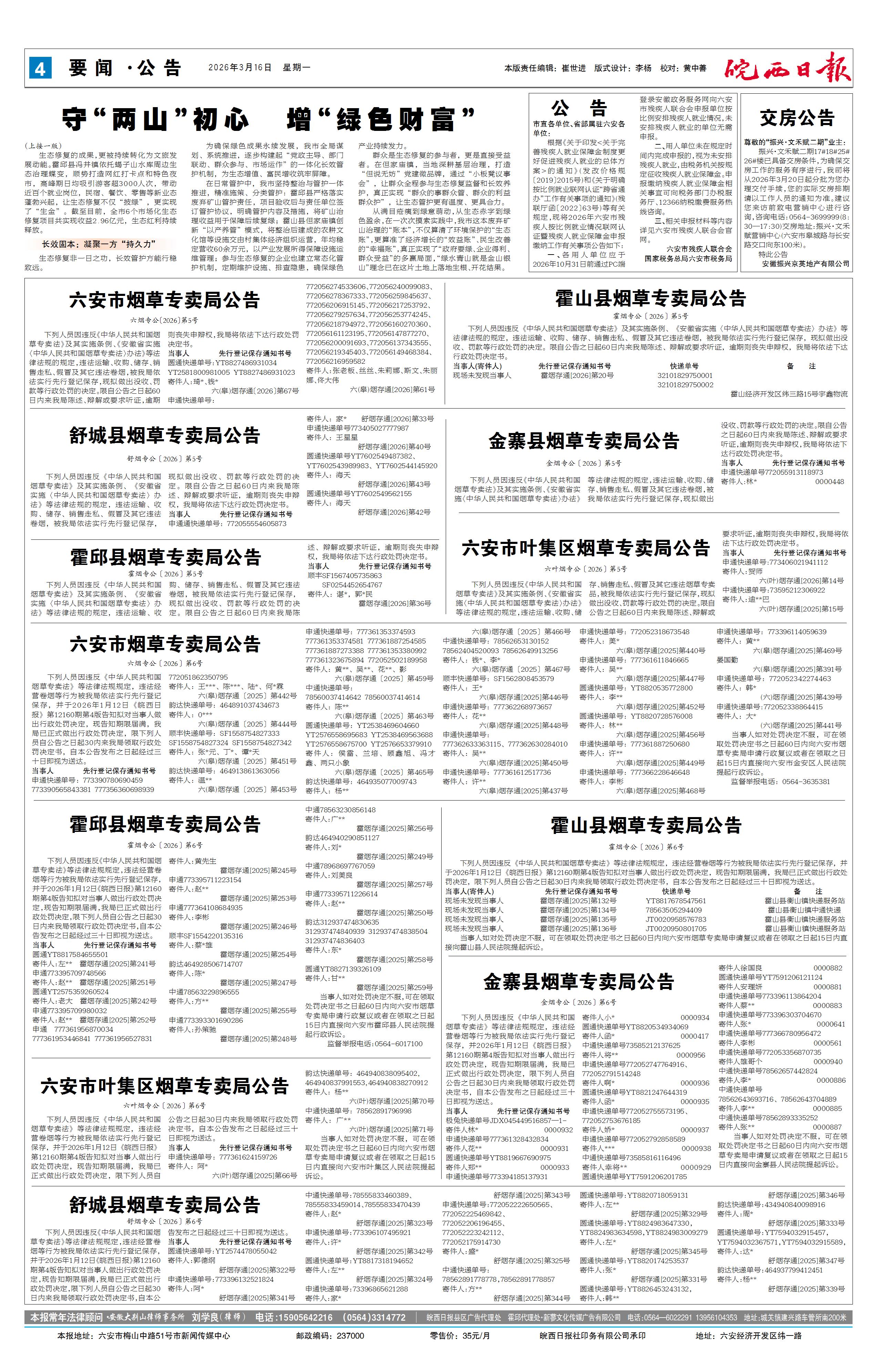 下列人员因违反《中华人民共和国烟草专卖法》等法律法规规定,违法经营卷烟等行为被我局依法实行先行登记保存,并于2026年1月12日《皖西日报》第12160期第4版告知拟对当事人做出行政处罚决定,现告知期限届满,我局已正式做出行政处罚决定,限下列人员自公告之日起30日内来我局领取行政处罚决定书,自本公告发布之日起经过三十日即视为送达。 当事人 先行登记保存通知书号 申通快递单号:777361624159726 寄件人:阿* 六(叶)烟存通[2025]第66号 韵达快递单号:464940838095402, 464940837991553,464940838270912 寄件人:杨** 六(叶)烟存通[2025]第70号 中通快递单号:78562891796998 寄件人:广** 六(叶)烟存通[2025]第71号 当事人如对处罚决定不服,可在领取处罚决定书之日起60日内向六安市烟草专卖局申请复议或者在领取之日起15日内直接向六安市叶集区人民法院提起诉讼。
