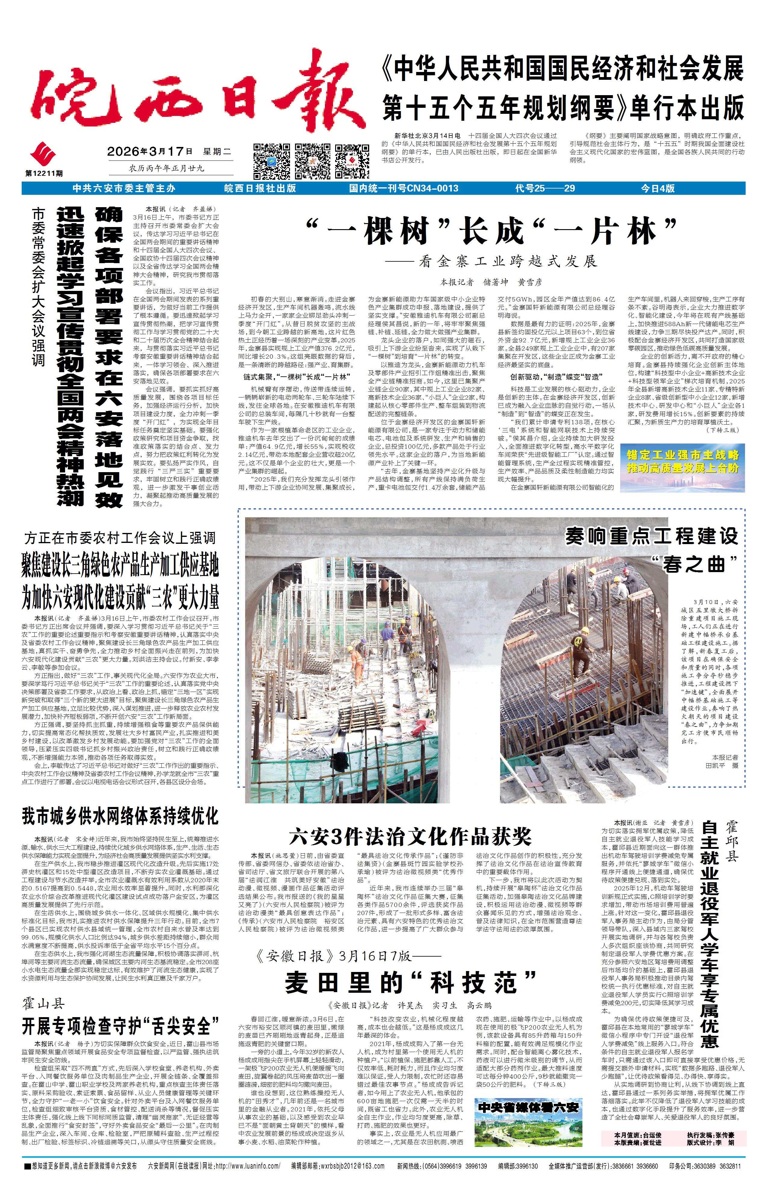 在生产供水上,我市稳步推进灌区现代化改造升级。先后实施17处淠史杭灌区和15处中型灌区改造项目,不断夯实农业灌溉基础。通过工程建设与节水改造并举,全市农业灌溉水有效利用系数从2020年末的0.5167提高到0.5448,农业用水效率显著提升。同时,水利部深化农业水价综合改革推进现代化灌区建设试点成功落户金安区,为灌区高质量发展提供了先行示范。