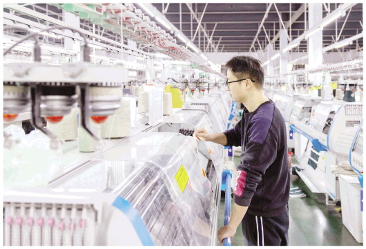 3月11日,在裕安区苏埠镇一家服饰公司电脑横机车间内,工人正在加紧生产订单产品。近年来,该镇建立“一企一档”,动员整合镇村力量“点对点”包保560余家企业,主动送政策上门、全力协助申报奖补,以持续优化的营商环境助力企业保持良好发展势头,带动群众在家门口实现就业增收。